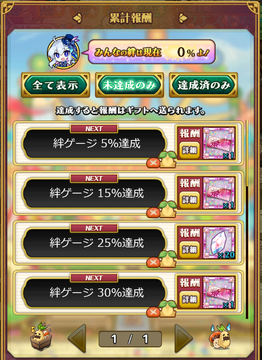 ※「ログレストゥーンパークへようこそ!」をクリアしていない場合は、「絆ゲージ累計報酬」の獲得はできません。