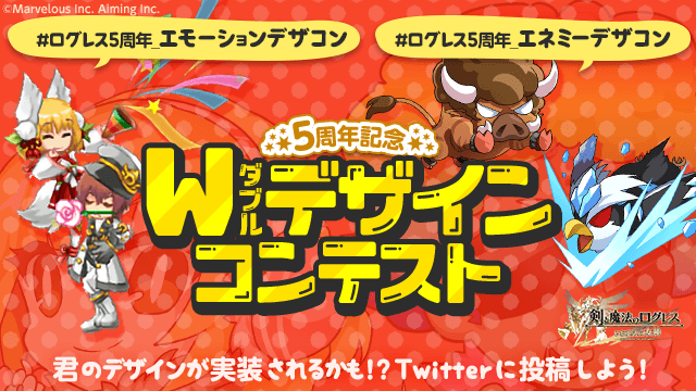 期間中、ログレス5周年記念として「エネミーデザインコンテスト」および「エモーションデザインコンテスト」を開催します。