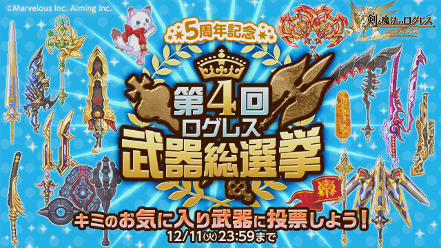期間中、ログレス5周年記念として「第4回武器総選挙」を開催します。