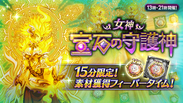 期間中、「ログレス」タブの時限イベントにて、「女神の輝石/宝石」が大量に手に入る「女神 宝石の守護神」のフィーバータイムを開催します。