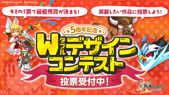 最優秀賞に選ばれた作品はなんとゲーム内で実装!また、期間中投票していただいた方に魔晶石5個をプレゼント!