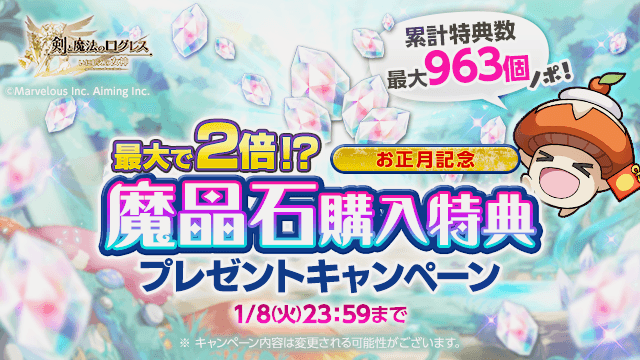 お正月を記念して、期間中の魔晶石購入金額の合計が特定金額に達するごとに、追加で魔晶石をプレゼント!