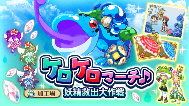期間中、「ログレス」タブのスペシャルクエストおよび時限イベントにて「ケロケロマーチ♪」を復刻開催します。