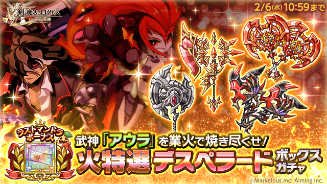 武神『アウラ』を業火で焼き尽くせ!「火特選 デスペラードボックスガチャ」