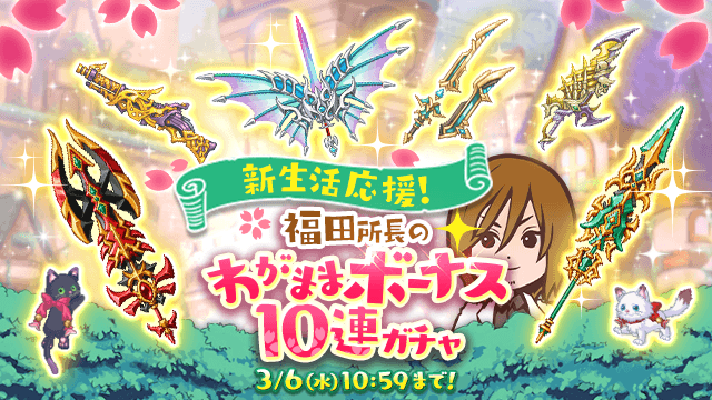 新生活応援★わがままボーナス10連ガチャや、総数150の専用武器入りボックスなどが登場!