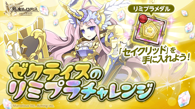 ゼクティスに挑み、所持上限300枚の強力な光属性のリミプラメダル「セイクリッド」を集めてキャラアビリティ「HP+100 / 光属性+100」を目指せ!