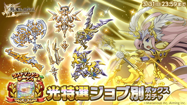 ●ボーナス付きボックスガチャで強力な武器を手に入れよう!「光特選ジョブ別ボックスガチャ」