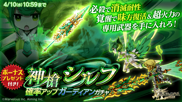 覚醒スキルを持った専用武器を手に入れろ!「神槍シルフ確率アップ ガーディアンガチャ」