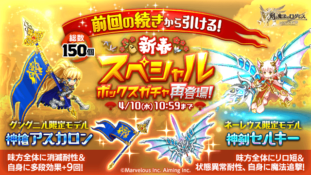 あのボックスが「続きから」で再登場!「神槍アスカロン&神剣セルキー スペシャルボックスガチャ」