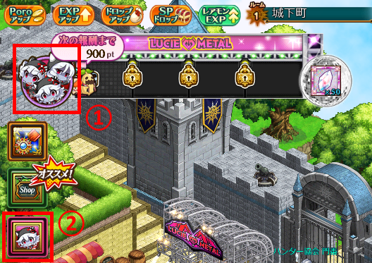 ▲累計報酬は①のルシェメタルアイコンから、交換報酬は②のリベリアアイコンから確認しよう!