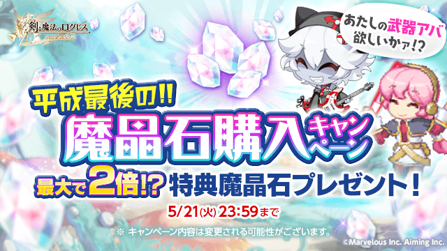 2019/4/24(水)メンテナンス後~5/21(火)23:59まで