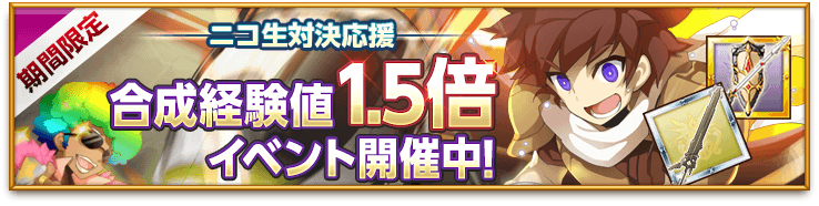 ニコ生対決応援「合成経験値1.5倍イベント」開催のお知らせ