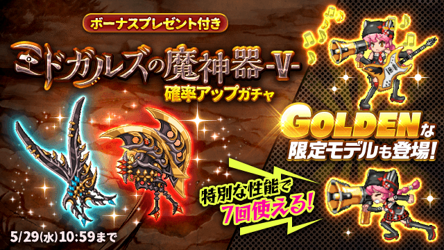 GOLDENな限定モデル入り「ミドガルズの魔神器-Ⅴ-確率アップガチャ」登場!ログフェスジャックのクエスト追加も!