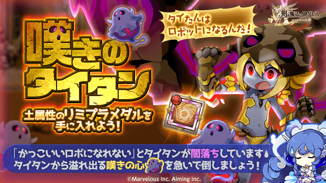 溢れ出る「嘆きの心」を制限時間内に倒してタイタンを浄化し、スクラッチ報酬で魔晶石や土属性のリミプラメダル「グランド」などを手に入れよう!
