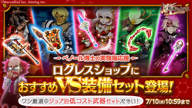 ●べノール博士の実験場応援!ログレスショップにおすすめVS装備セット登場!【7/10(水)更新】