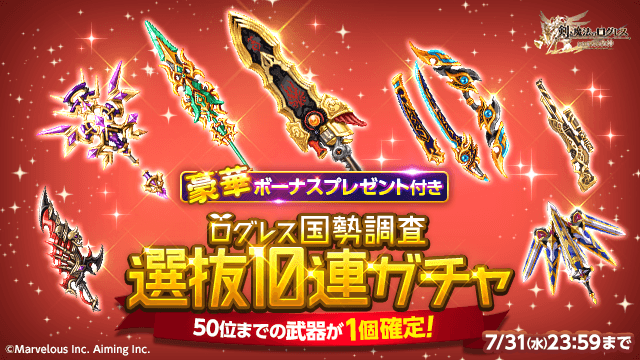 ●2019年上半期の人気武器が勢揃い!「ログレス国勢調査選抜10連ガチャ」