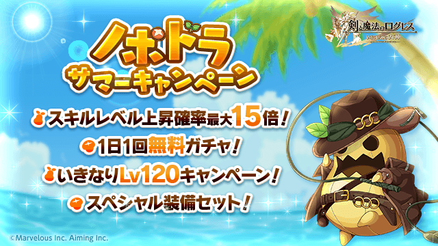 1日1回無料ガチャやスキルLv上昇確率最大15倍など!「ノポドラサマーキャンペーン」