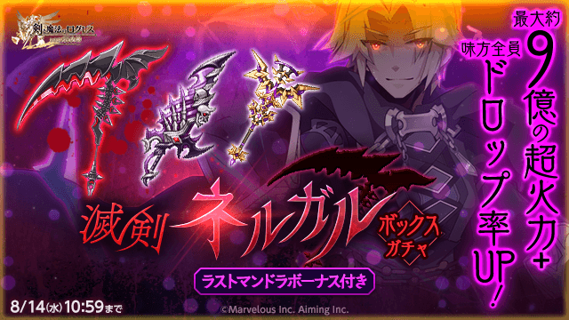 味方全体にドロップ率UPの恩恵を!「滅剣ネルガルボックスガチャ」【8/14(水)更新】