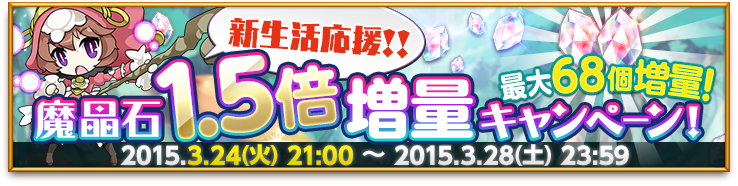 2015/3/24(火)21:00 20:30 より、「魔晶石1.5倍キャンペーン」を開催いたします。 【20:30追記】