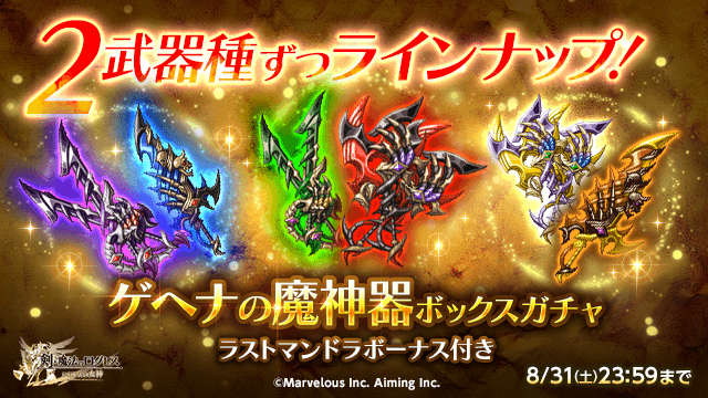 2武器種ずつラインナップ!「ゲヘナの魔神器ボックスガチャ」