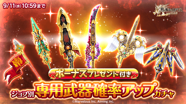 人気の専用武器を手に入れよう!「ジョブ別 専用武器確率アップガチャ」