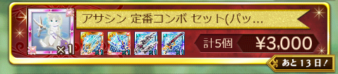 なお、本件は表示上の不具合のみとなり、ログレスショップ画面で「アサシン 定番コンボ セット(パック)」を選択した場合、正常に表示されたセット内容をご購入いただけることを確認しております。