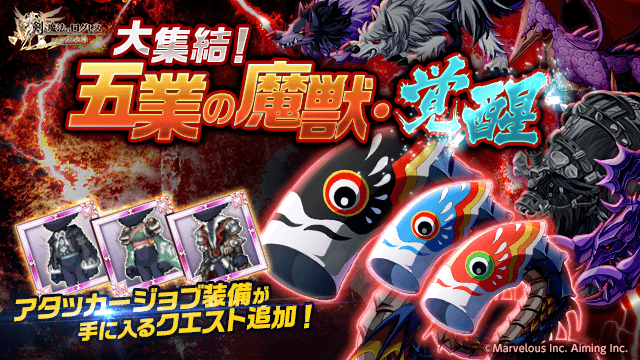 アタッカージョブ装備を入手できるクエスト追加!「大集結!五業の魔獣・覚醒」