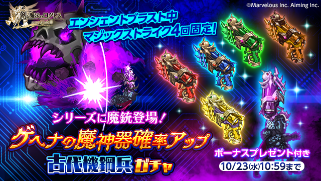 シリーズに魔銃登場!「ゲヘナの魔神器確率アップ 古代機鋼兵ガチャ」