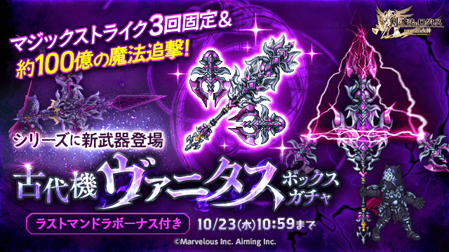 好きな属性の「魔銃コルトス」が手に入るラストマンドラボーナス付きのガチャで、古代機鋼兵の装備をパワーアップしよう!