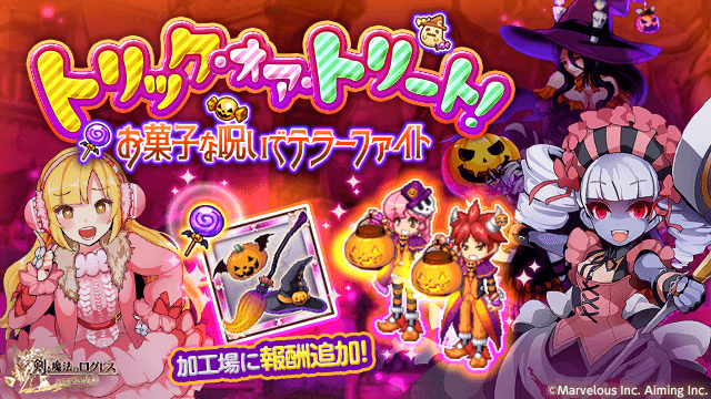 期間中、「ログレス」タブのスペシャルクエストおよび時限イベントにて「トリック・オア・トリート!~お菓子な呪いでテラーファイト~」を開催します。