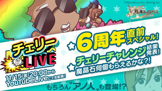 【11/15(金)20:00放送】「ログレス大喜利」開催決定!先行情報を見逃すな★「チェリーLIVE 6周年直前スぺシャル」放送!(11/13更新)