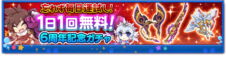 期間中、ガチャの「オススメ」タブにて、1日1回無料で利用することができる「6周年記念ガチャ」を実施します。