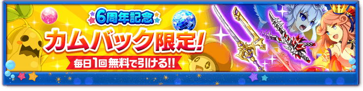 ●1日1回特別なガチャが引ける!「6周年記念カムバックキャンペーン」
