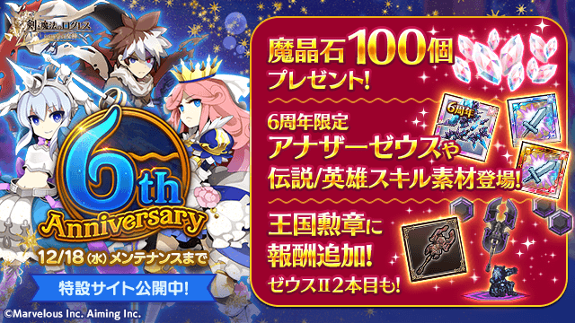 6周年記念のスペシャルキャンペーンとして、魔晶石合計100個をプレゼントします!