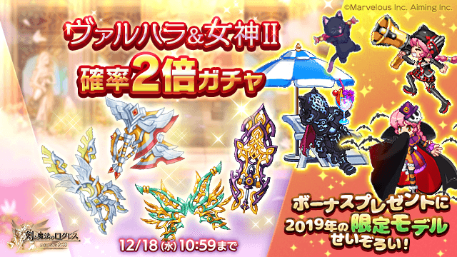 2019年の限定モデルが手に入るボーナス付き★ヴァルハラの魔神器などが確率2倍で今週のガチャも見逃せない!