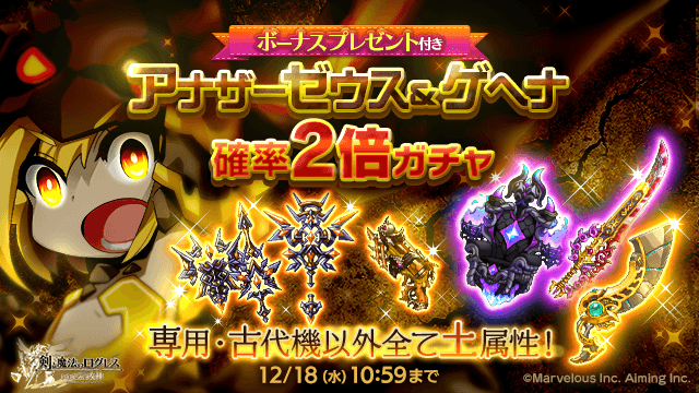 土属性強化にオススメ!「アナザーゼウス&ゲヘナ確率2倍ガチャ」