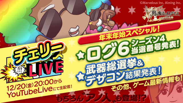 【12/20(金)20:00から】「ログ6」の当選番号や「武器総選挙」&「デザコン」結果をドドンと発表!「チェリーLIVE 年末年始スペシャル」放送!(12/18更新)