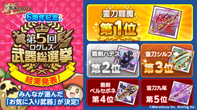 皆さんお待ちかね!6周年記念「第5回ログレス武器総選挙」の結果を発表!