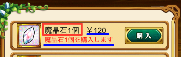 魔晶石をご購入いただく際は、下記画像の赤く囲われた部分をご確認いただきご購入くださいますようお願い申し上げます。
