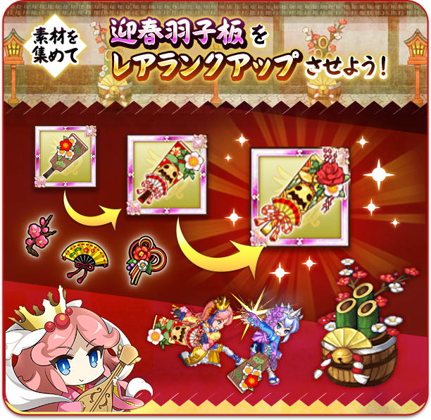 イベント限定素材を集め、加工場でイベント限定武器「魔剣 迎春羽子板」や限定防具&アクセ「親分ねずみ」シリーズを製作しよう!