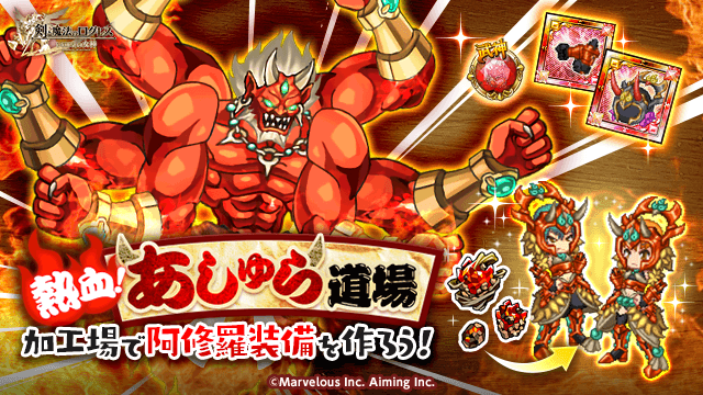イベント限定素材を集め、加工場で「阿修羅の兜-炎神-」を含む阿修羅装備や「阿修羅の魔神器」シリーズを製作しよう!