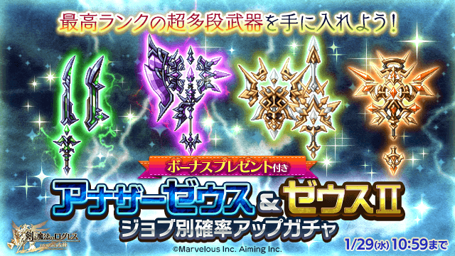 超多段武器を手に入れよう!「ジョブ別 アナザーゼウス&ゼウスⅡ確率アップガチャ」