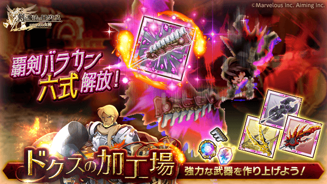 2020/1/22(水)のメンテナンスにて、「ドクスの加工場」で制作可能な「覇剣バラカン」が「六式」まで強化可能になりました!