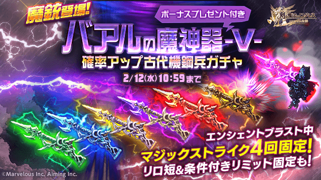 新登場「バアルの魔神器(魔銃)」から「バアルの魔神器-Ⅴ-」がシリーズごとに確率2倍のガチャで登場!