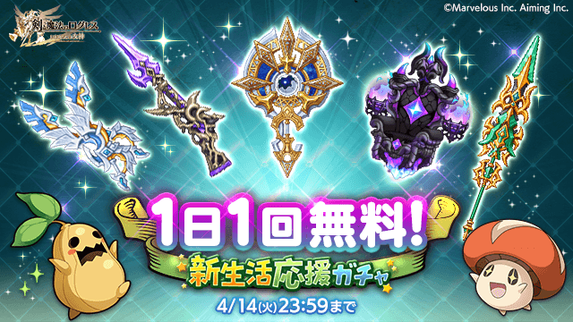 期間中、ガチャの「オススメ」タブにて、1日1回無料で引ける「1日1回無料!新生活応援ガチャ」を実施します。
