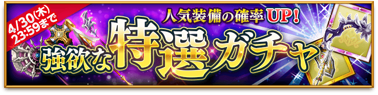 人気装備の確率UP!「強欲な特選ガチャ」開催のお知らせ