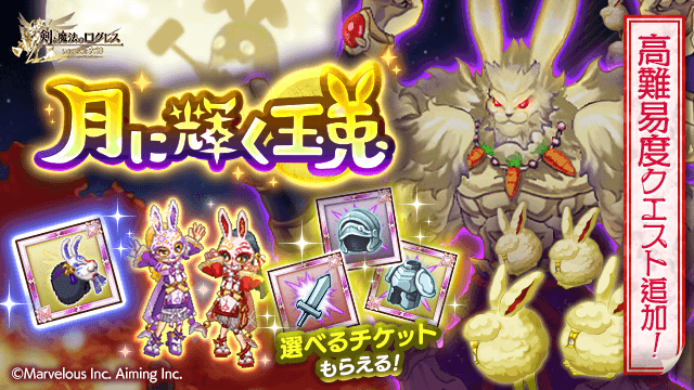 期間中、「ログレス」タブのスペシャルクエストおよび時限イベントにて「月に輝く玉兎」を開催します。