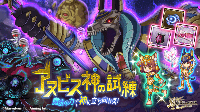 期間中、「ログレス」タブのスペシャルクエストおよび時限イベントにて「アヌビス神の試練」を開催します。
