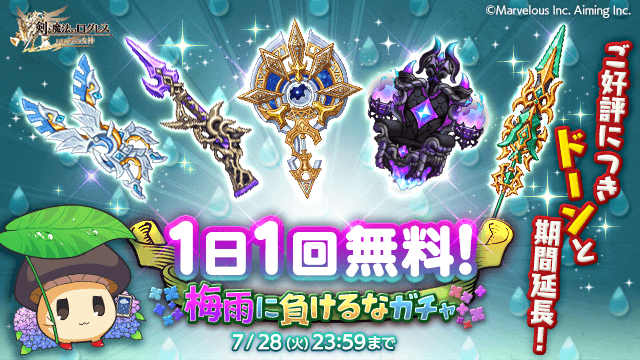 ※「1日1回無料!梅雨に負けるなガチャ」の利用回数は毎日0:00にリセットされます。