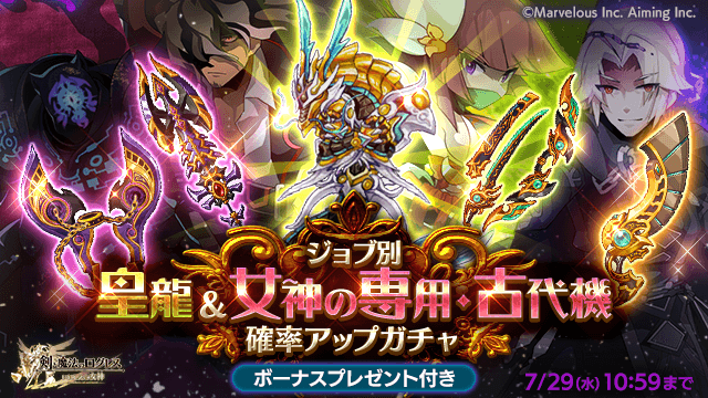 強力な武器を狙い撃ち!「ジョブ別 皇龍&女神の専用・古代機確率アップガチャ」